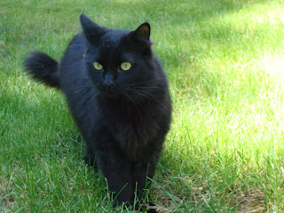 After we were safely piloted by a driver who not only no longer had a hat across his face, but could also see with the aid of his glasses, I turned my attention to the small black cat. Exactly what type of cat would try to kill the people who just saved him? He didn't even let us get home before he tried to kill us! You would think that cats would know that part of being adopted was not to kill the adoptive parents... shouldn't they have a class or something? I held his face firmly in my hands and looked deep into his eyes.....
